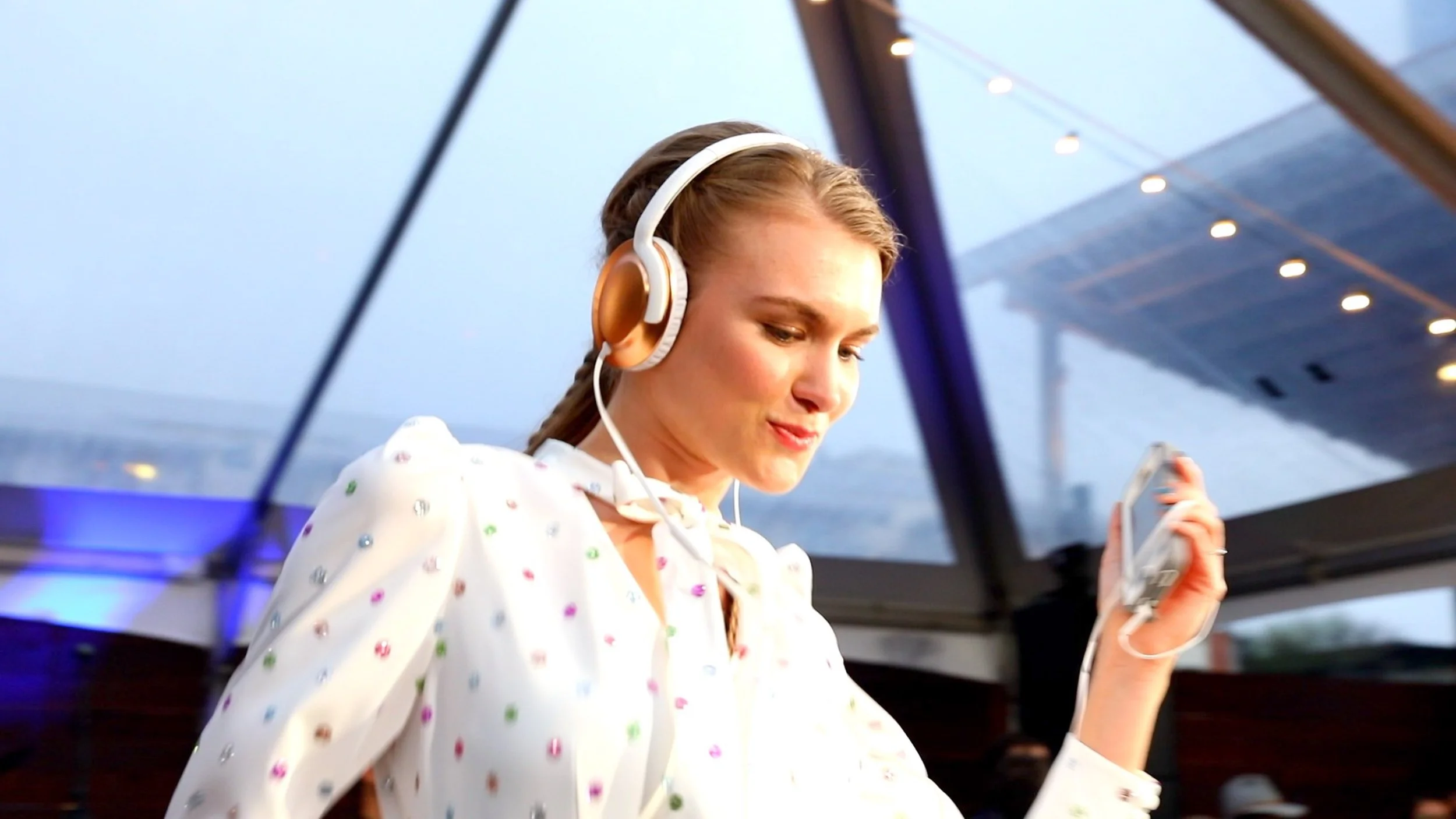 Imagine Gibson guitars and Philips Home Entertainment headphones blending seamlessly with our Texas-inspired street-styled looks pulled from Neiman Marcus... complete with cowboy boots and vegan nail polish. The models danced through rain puddles to a soundtrack of badass Gibson guitar-playing artists remixed by Akira the Don. And the decor? It was a unique blend of vintage furniture, custom reclaimed wood bars, a versatile step and repeat meets runway backdrop, of reused flowers and hops from previous events and later composted.